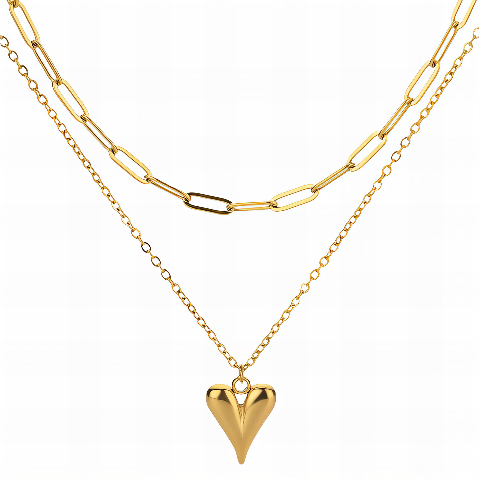 Dubbele paperclip ketting Hart 18K