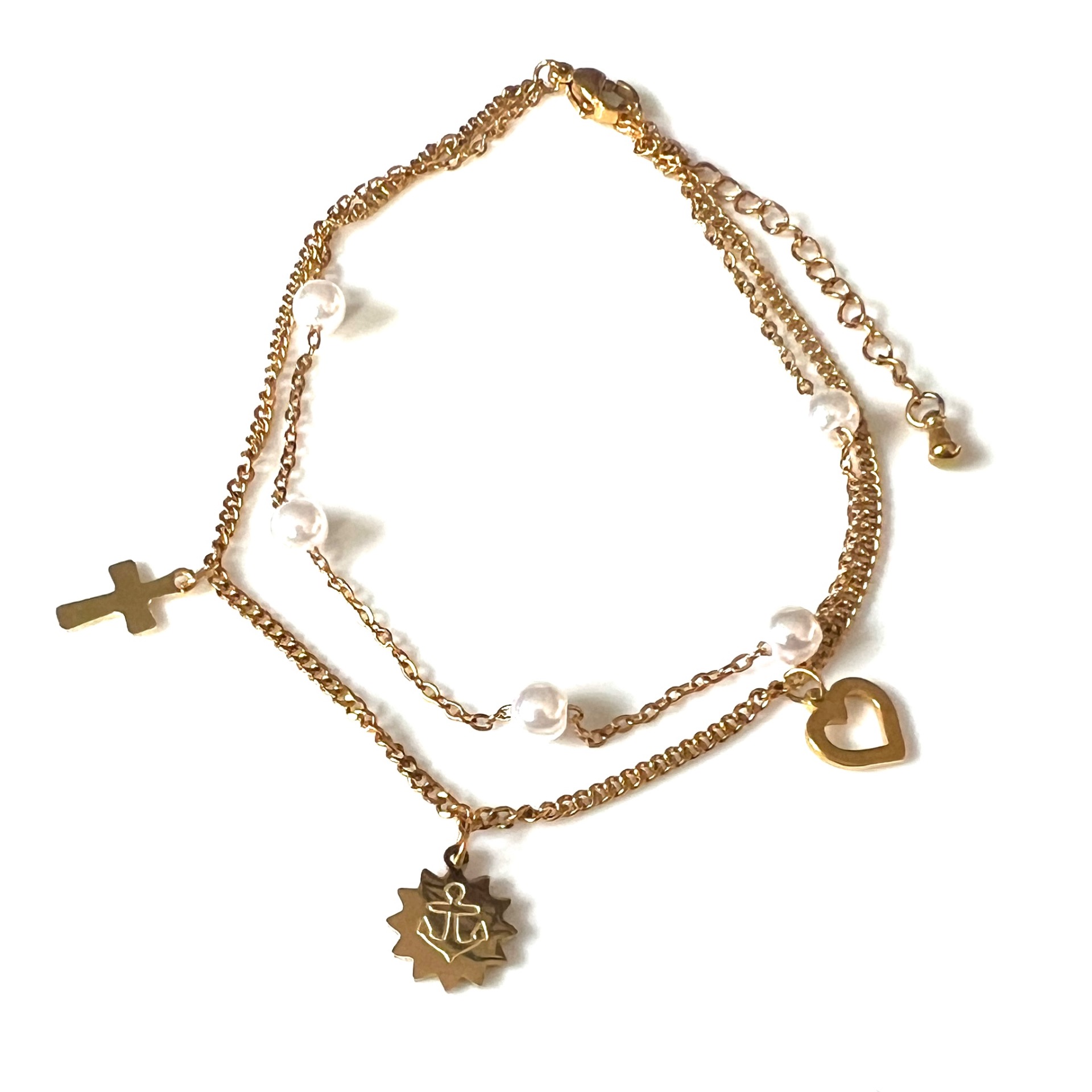 Materiaal: Roestvrij staal, parelimitatie, 18K verguld.