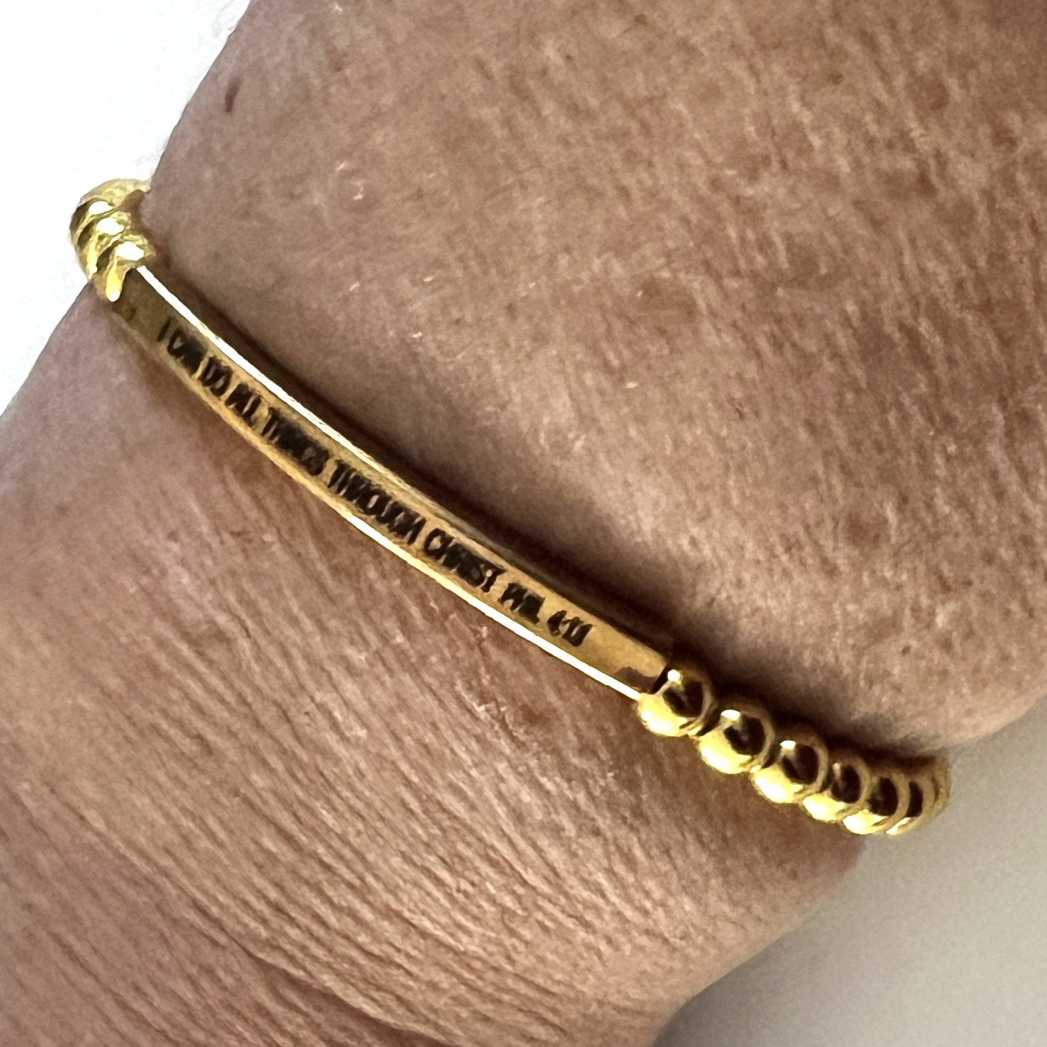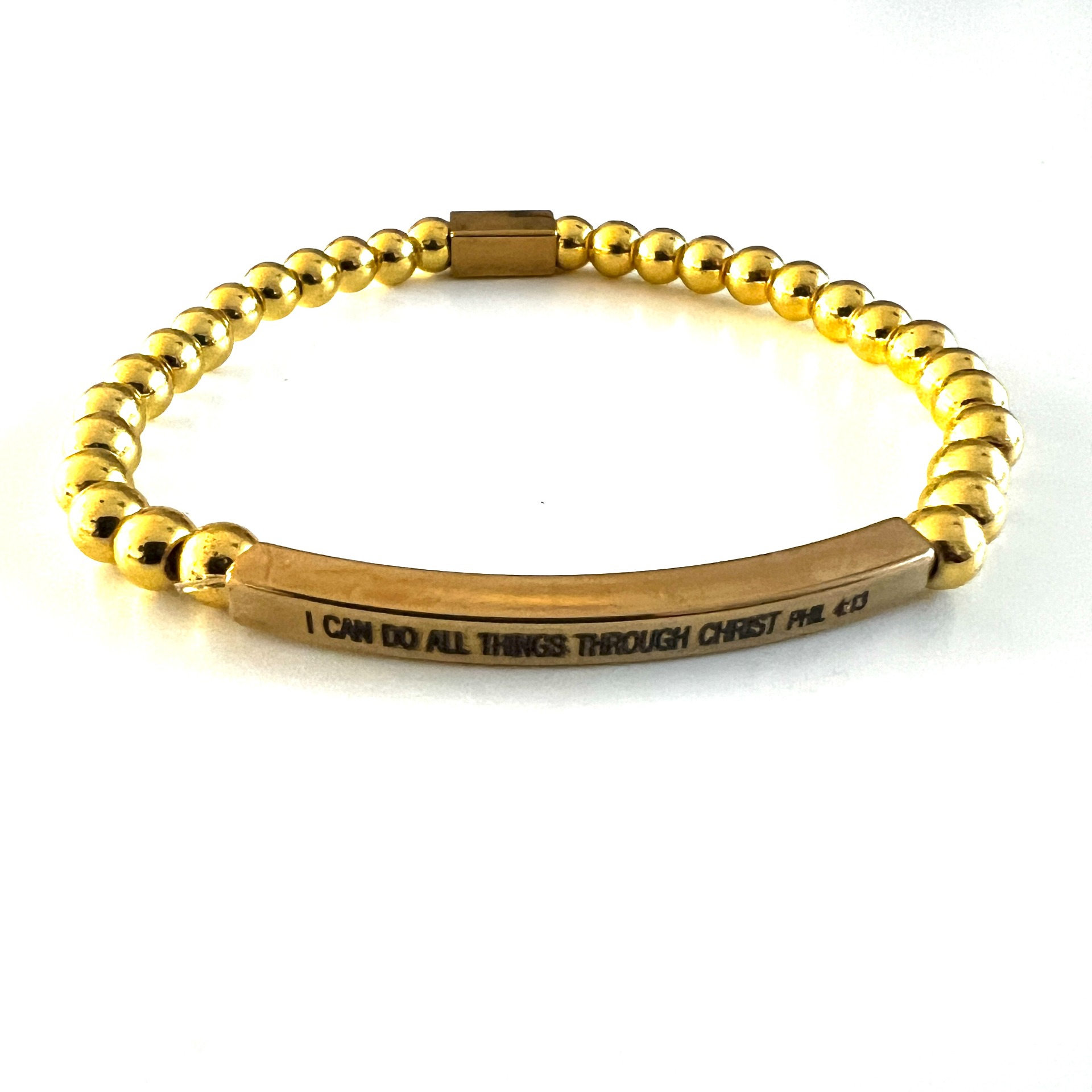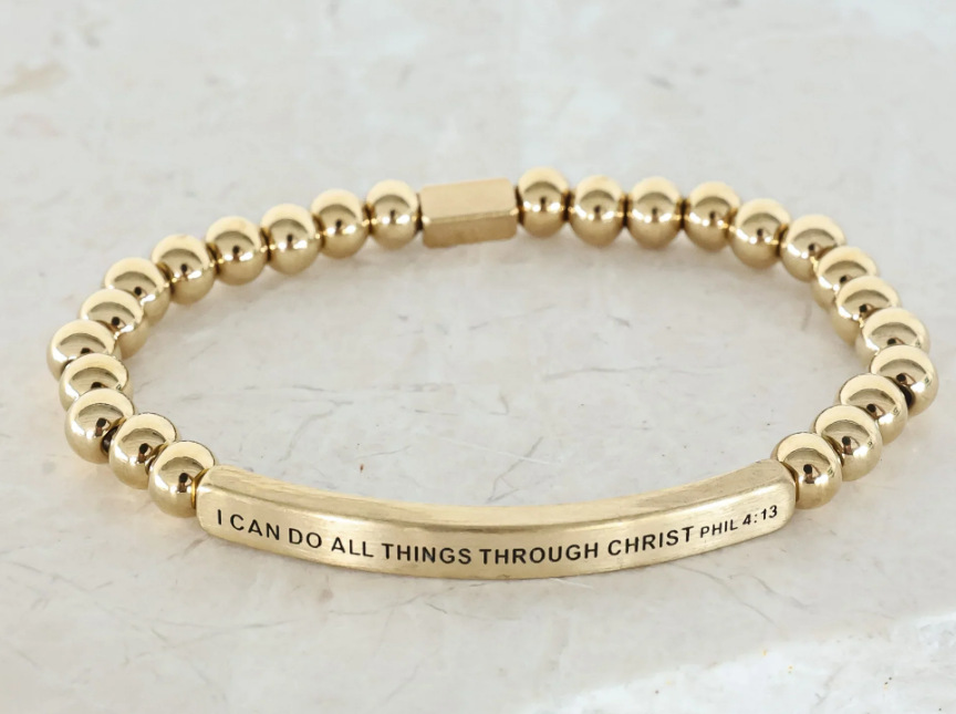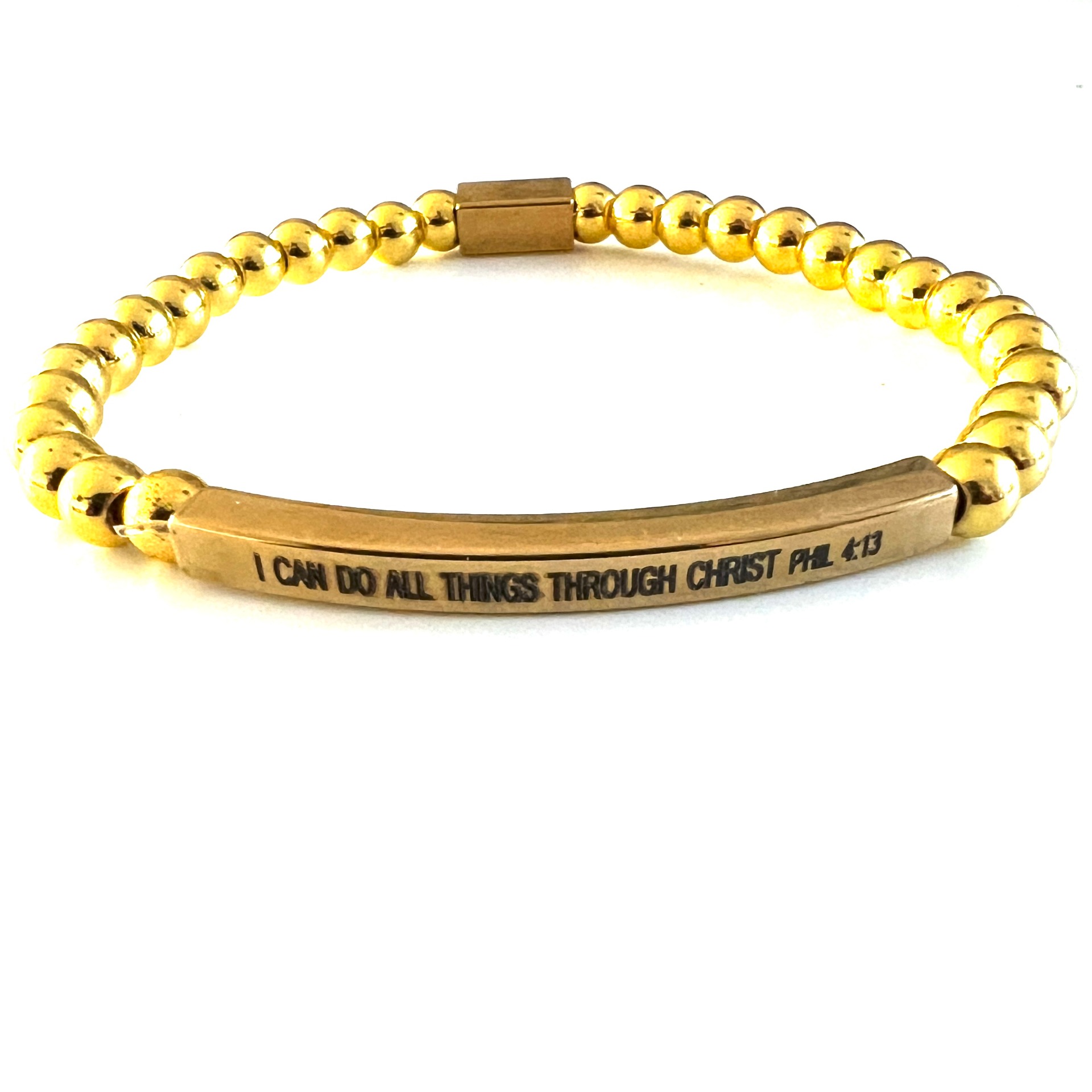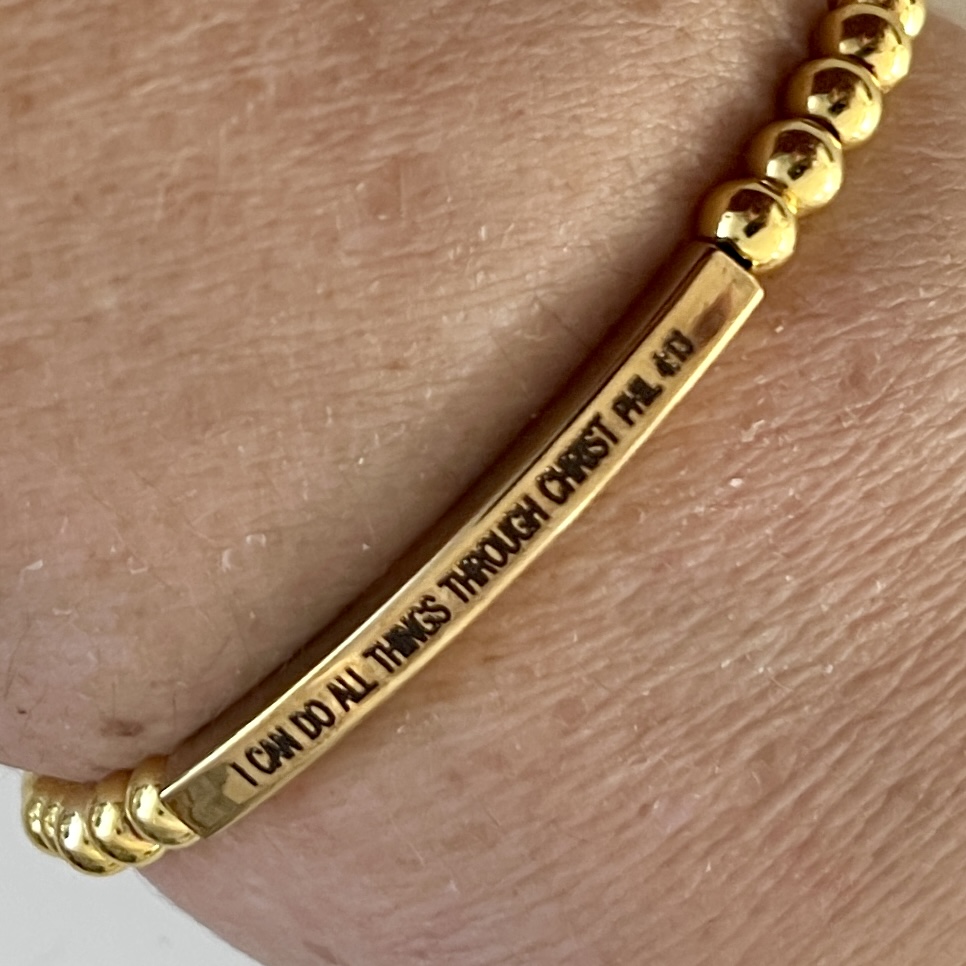 Kralen armband met de tekst:"I can do all things through Christ" Phil 4:13