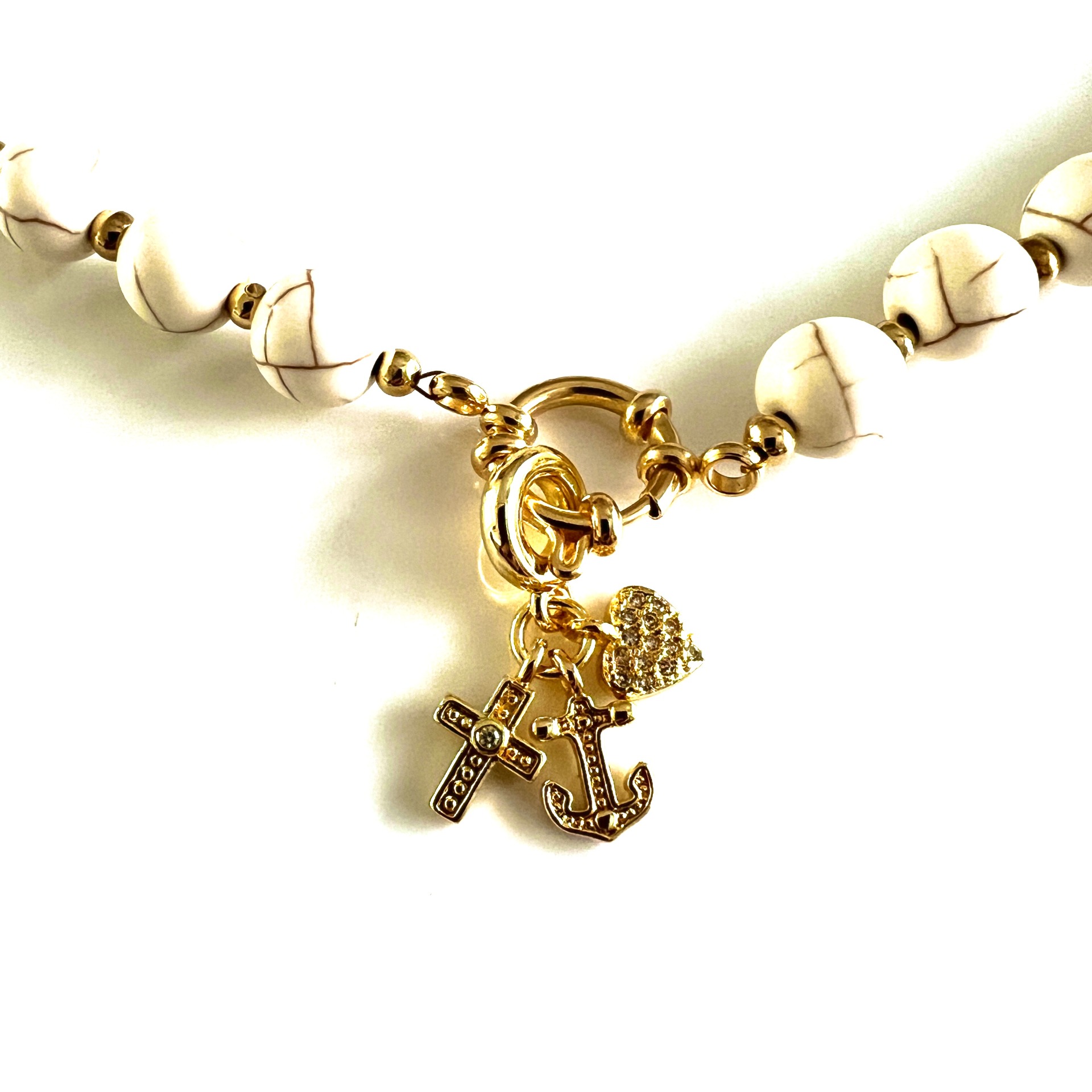 Kralen ketting Creme, met Geloof Hoop en Liefde Bedel