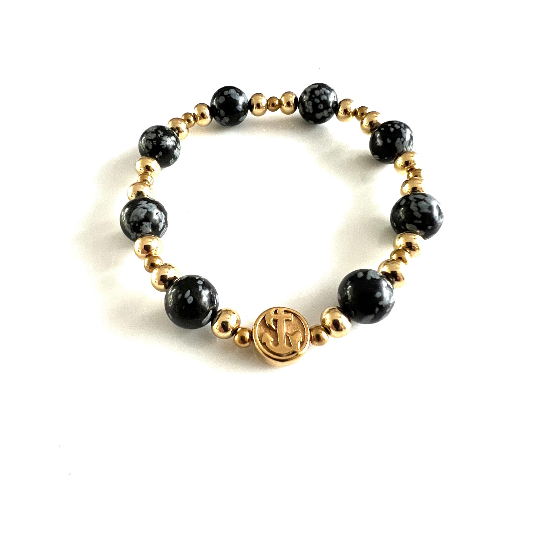 De zwart/grijze kralen zijn 1cm doorsnede.