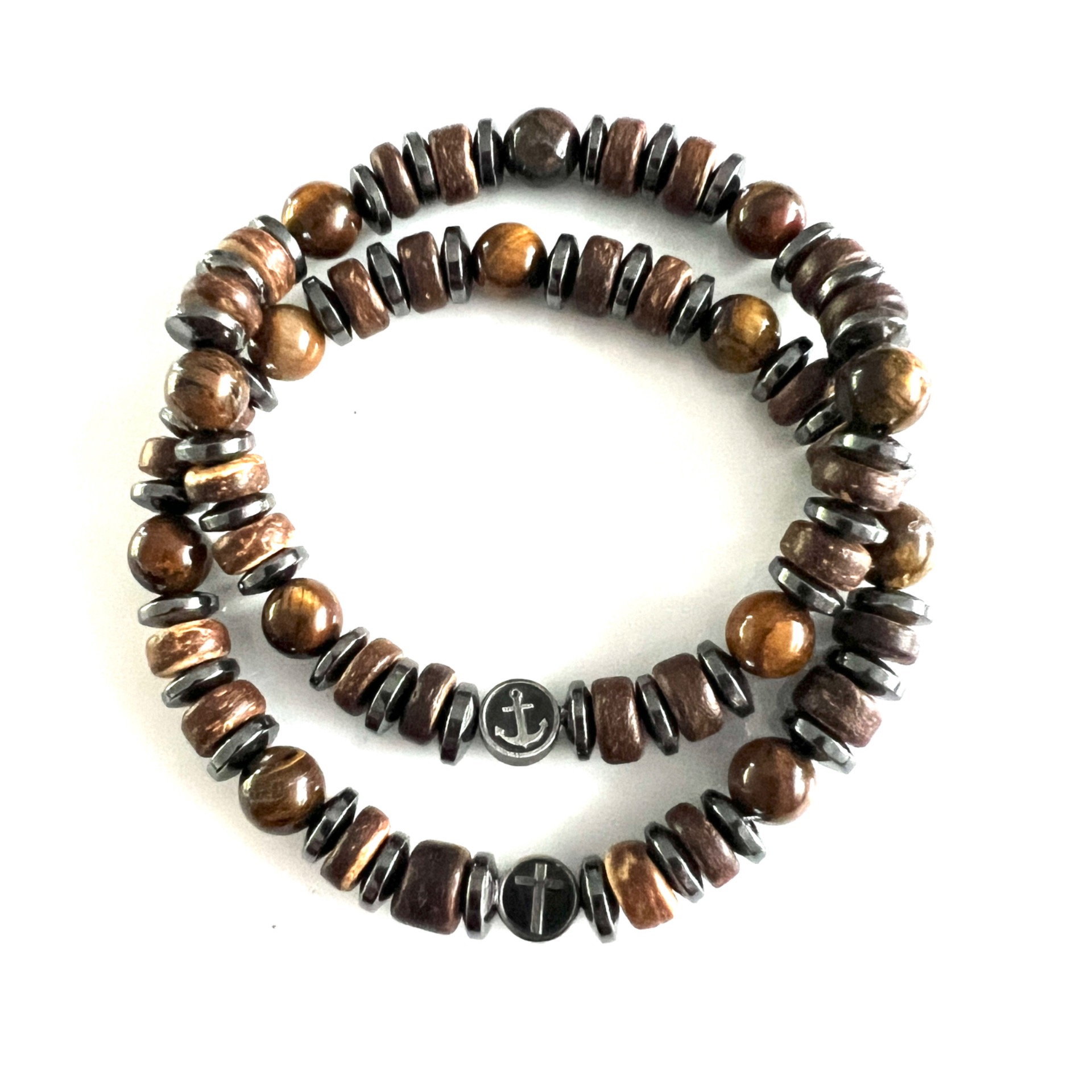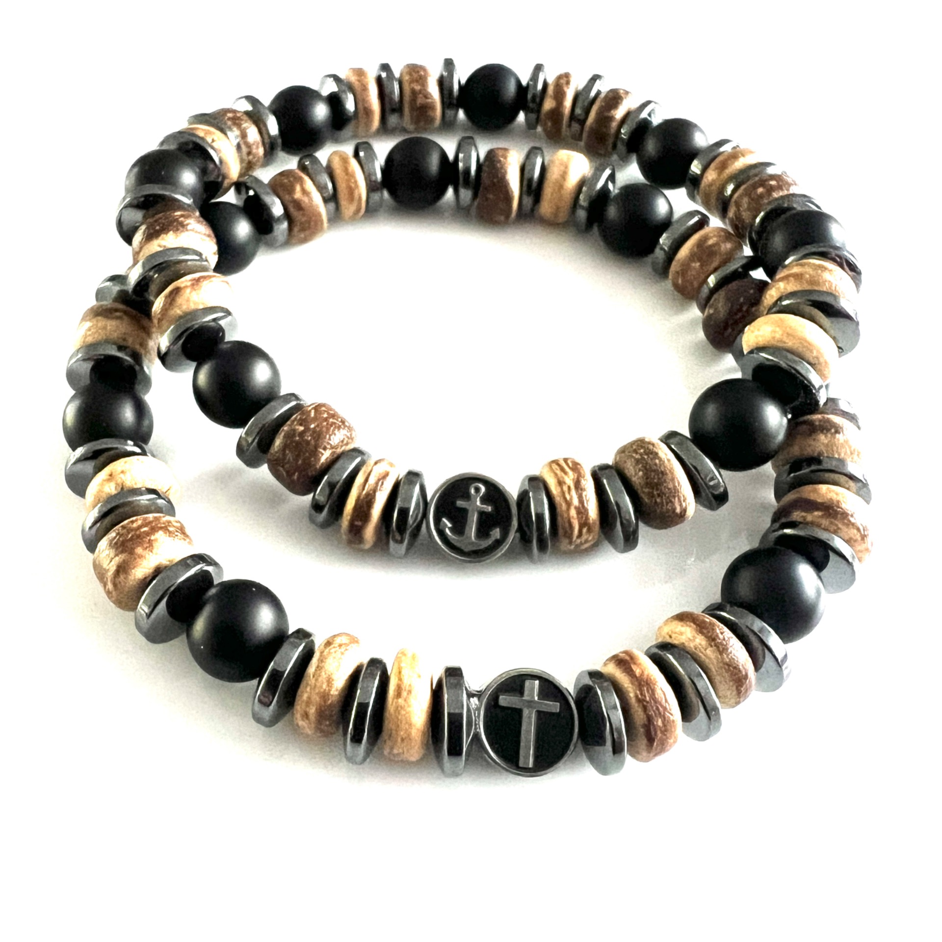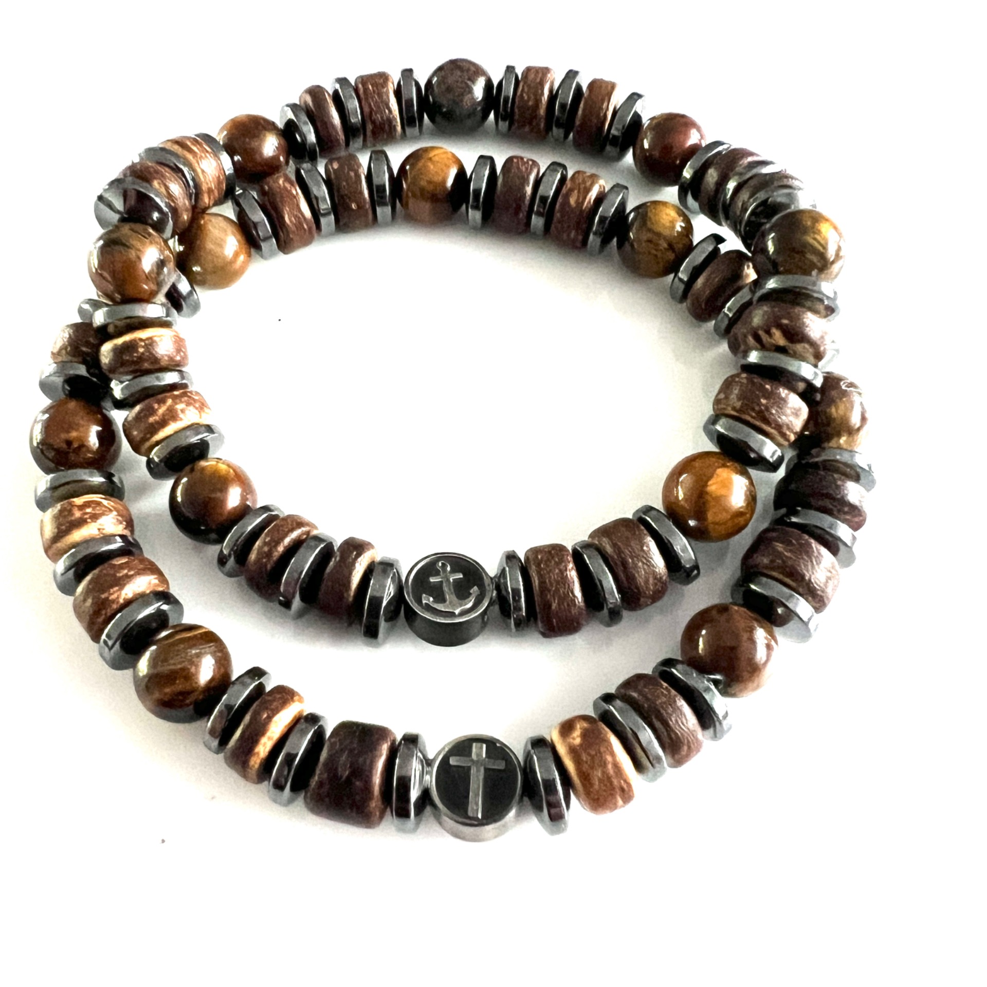 Met bedelkraal van RVS antiek-zilver, met daarop naar keuze een kruis of een anker.