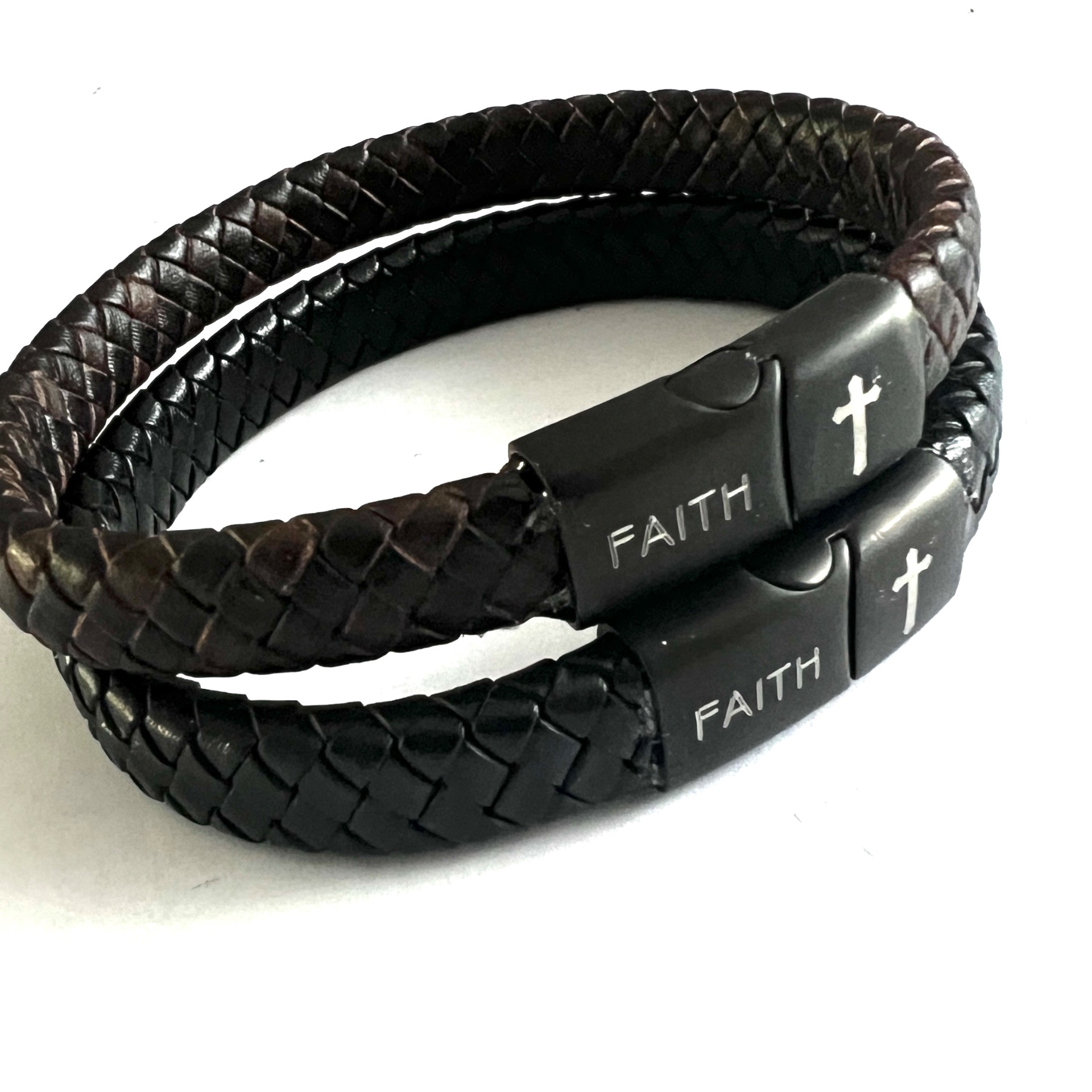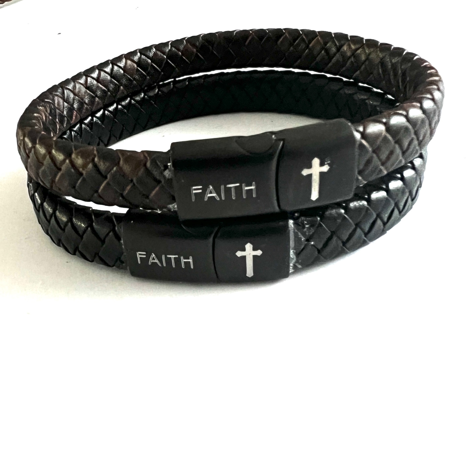 Mooie Stoere Armband van Leer , Faith/ Cross