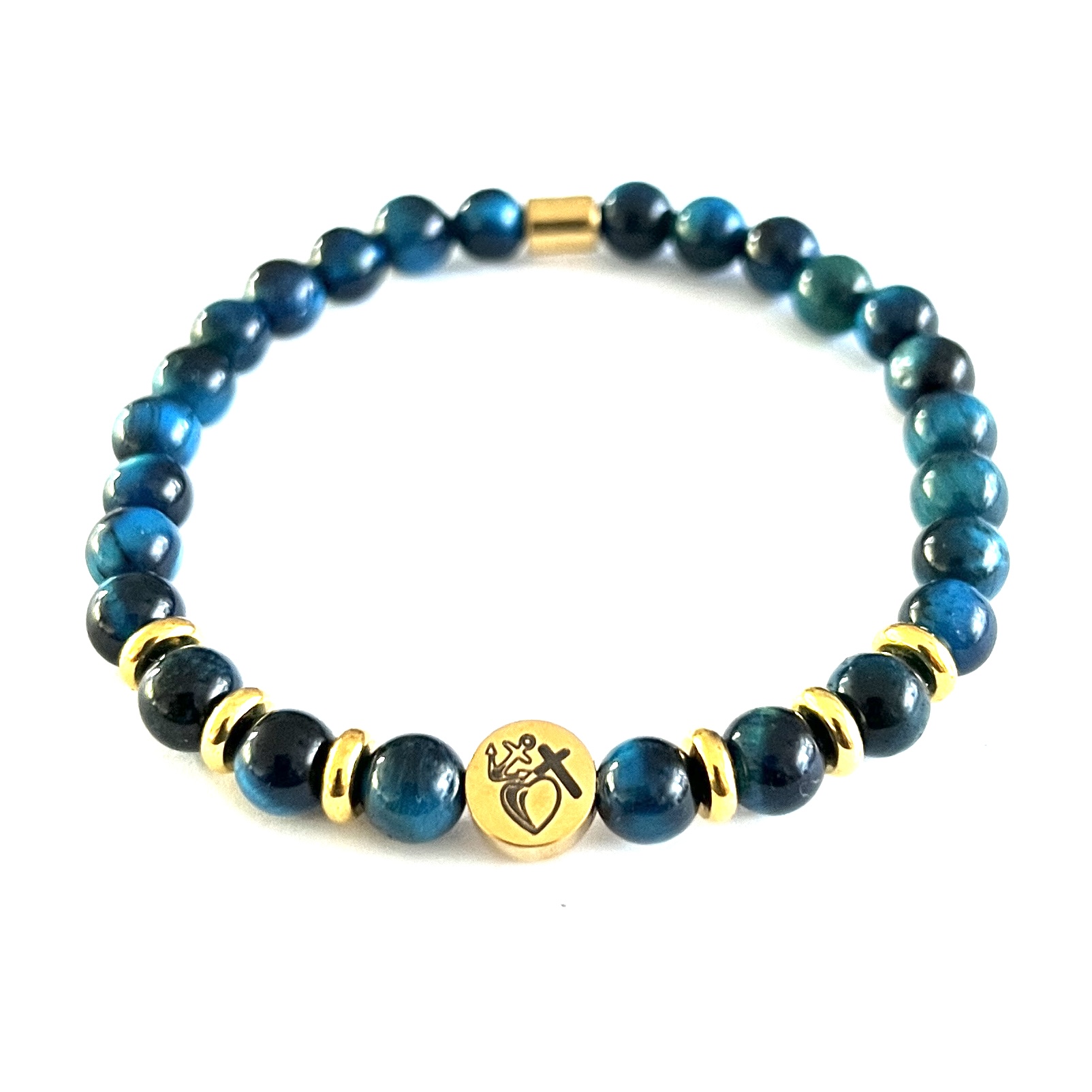 Armband gemaakt van natuursteen met RVS Bedel Geloof Hoop Liefde