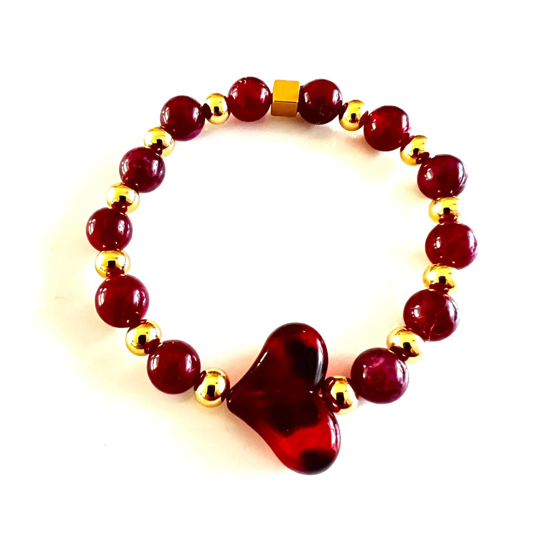 Natuursteen kralen armband Hart Rood