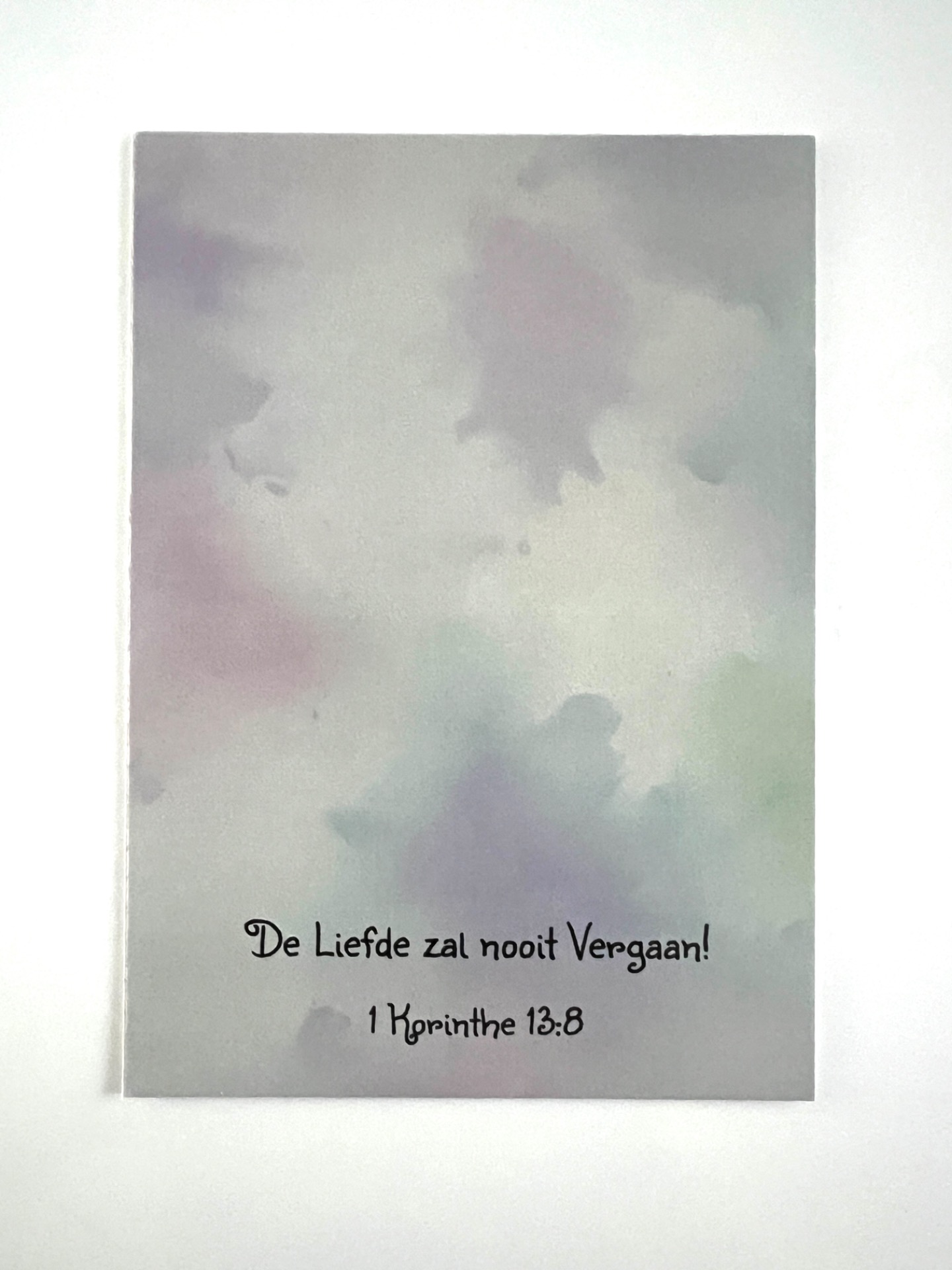 Kaartje: De liefde zal nooit vergaan!Naar 1 Korinthe 13:8