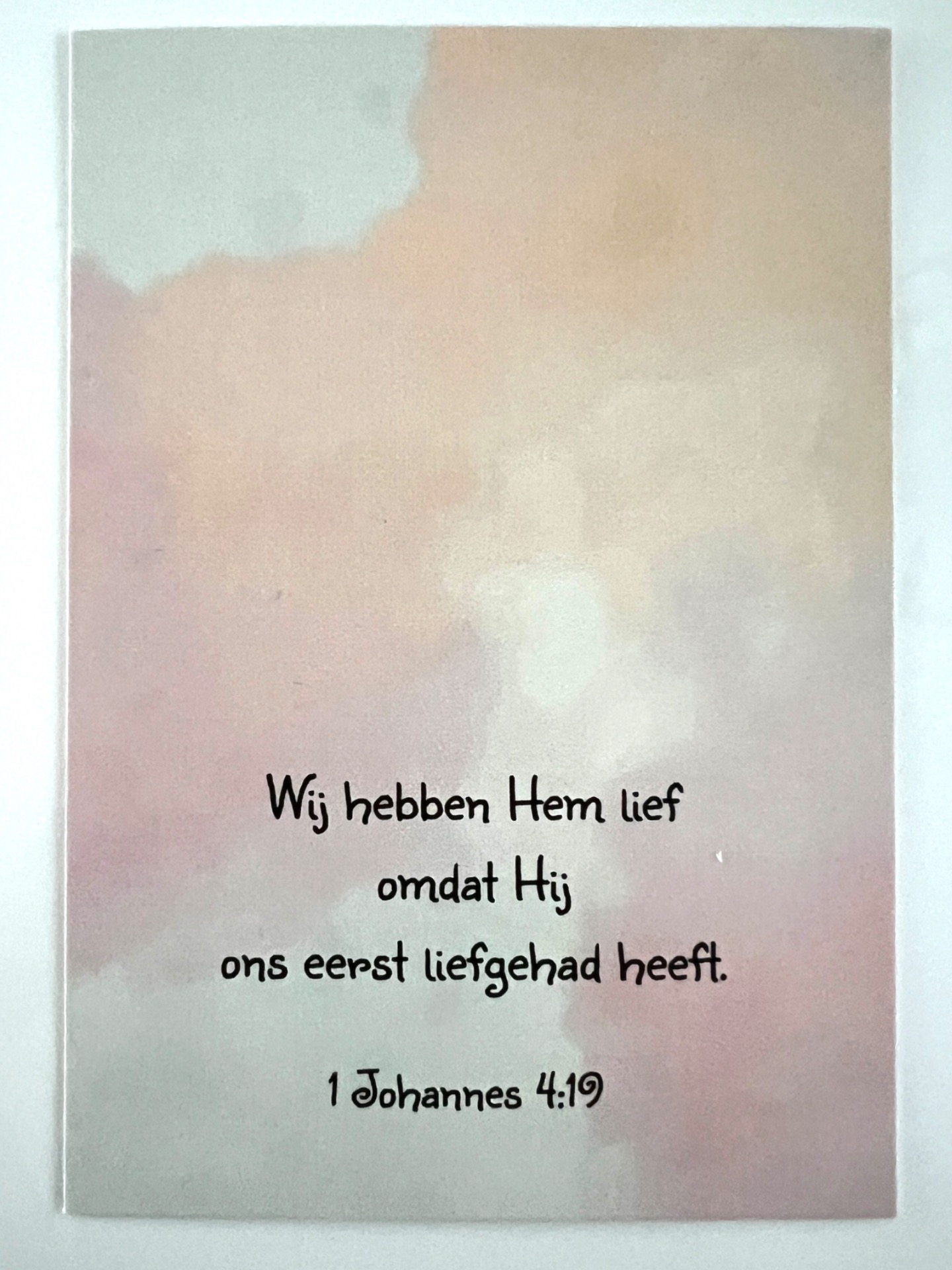 sieradenkaartje Wij hebben lief omdat Hij ons eerst heeft lief gehad.Naar 1 Johannes 4:19